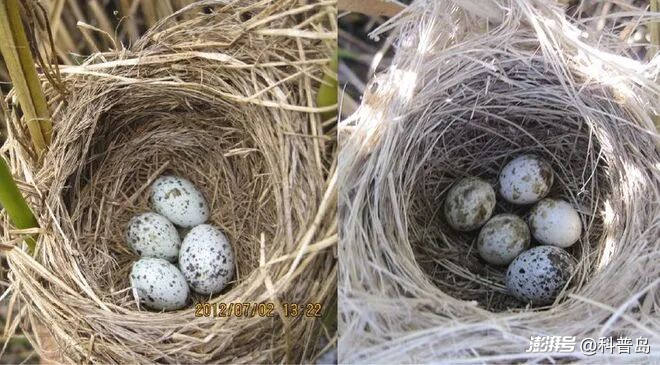 被大杜鵑巢寄生的東方大葦鶯(左)和震旦鴉雀(右)的巢。 圖片來源:Canchao YANG,et al. / Zoological Research(2014)