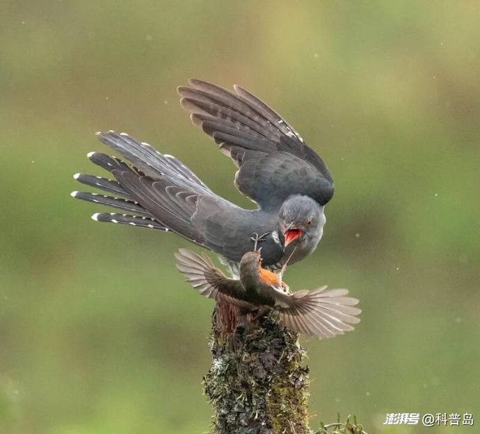 育雛防御戰(zhàn):即使杜鵑雛鳥成功孵化,一些宿主也會通過識別并減少對杜鵑雛鳥的喂食頻率,或攻擊異常雛鳥來限制其生存。例如,灰喜鵲會啄擊體型過大的杜鵑雛鳥,迫使其離巢。