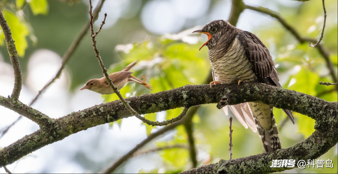 當(dāng)小杜鵑已經(jīng)可以離巢活動,卻依然長著“血盆大口”嗷嗷待哺,催促養(yǎng)父母抓蟲子,甚至?xí)^激地攻擊可憐的養(yǎng)父母。有的養(yǎng)父母便會在這時驅(qū)趕小杜鵑,覺得這只體型巨大的鳥不再值得喂食,育雛的本能也不再被激活。原因究竟是認(rèn)出了這個“小惡魔”并非親生,還是督促自己孩子獨(dú)立生存?我們不得而知。