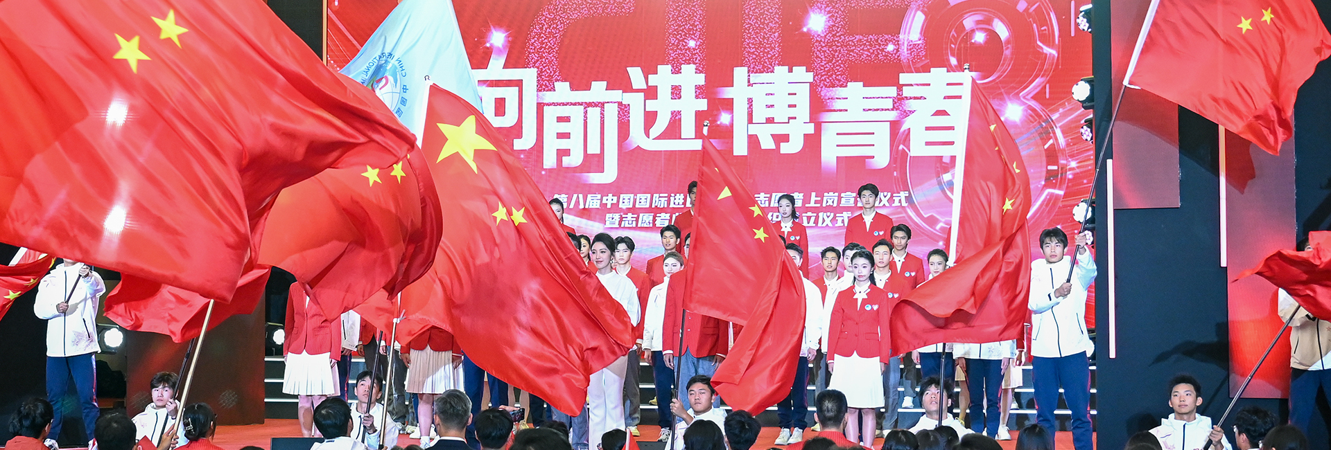 10月29日,第八屆中國國際進口博覽會(以下簡稱進博會)志愿者上崗宣誓儀式暨志愿者臨時黨、團組織成立儀式在上海展覽中心友誼會堂舉行,3865名進博“小葉子”在嘹亮的青春誓言中宣誓上崗。