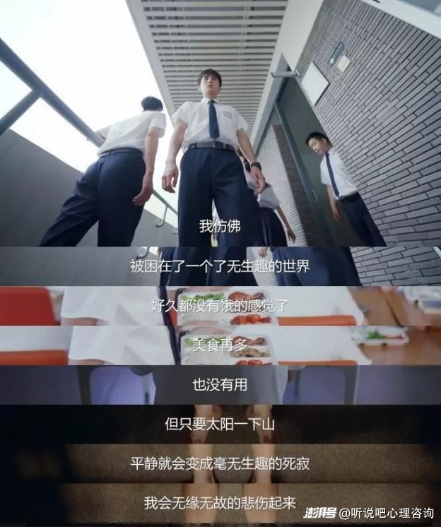 而他身邊的同學(xué)也都是這樣,他不明白,為什么一天的起始都是這樣的不快樂?人生都是這樣嗎?在一天的早晨,在爸媽照舊地催促聲中,他發(fā)現(xiàn)自己渾身都沒有力氣,起不來床了,抑郁不知在什么時(shí)候找上了他。