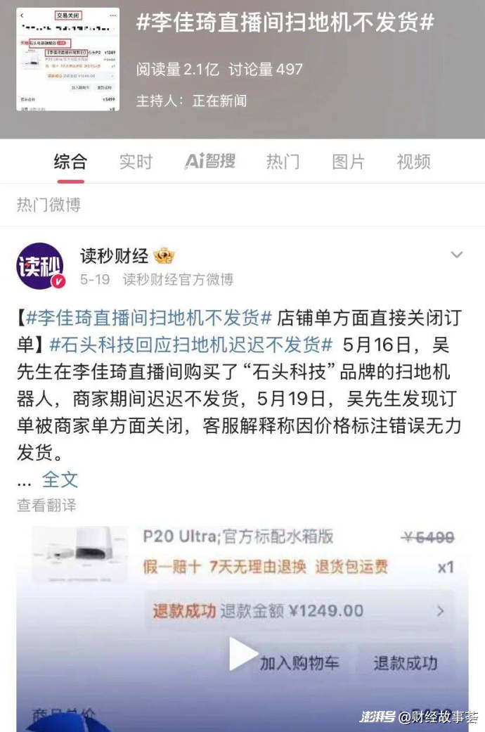 到了今年 5 月,據(jù)讀秒財(cái)經(jīng)報(bào)道,多個(gè)消費(fèi)者爆料稱,他們?cè)诶罴宴辈ラg以 1000 多元的價(jià)格下單原價(jià)約 3500 元的石頭科技掃地機(jī)器人,卻被商家鴿了,不僅不發(fā)貨,還以“價(jià)格標(biāo)注錯(cuò)誤”為由,單方面關(guān)閉訂單。
