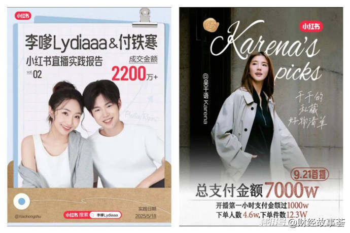 后起之秀小紅書(shū)也跟抖音一樣采取去中心化機(jī)制,平臺(tái)上的明星主播已歷經(jīng)多輪更替,從董潔、章小蕙、伊能靜、吳昕、李嗲、趙露思到近期的“新帶貨一姐”吳千語(yǔ),在“鐵打的小紅書(shū),流水的一姐”這條路上越走越遠(yuǎn)。