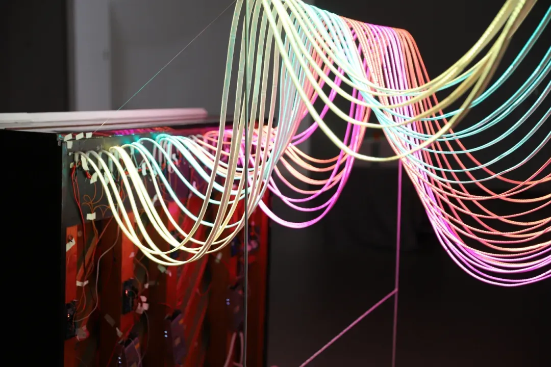 作品社會(huì)決策模擬器是一個(gè)多智能體驅(qū)動(dòng)的實(shí)體交互裝置。我們以話語性設(shè)計(jì)和參與式方法為基礎(chǔ),對(duì)有關(guān)人工智能(AI)的流行敘事提出了質(zhì)詢,通過設(shè)計(jì)去促進(jìn)反思并制造公共話語,探索 AI 在合意未來中的構(gòu)建方式?;谠碚摲椒?,作品分析媒體關(guān)于 AI的敘事話語,從其隱含價(jià)值和話語策略中抽象出恐懼制造者、行業(yè)專家、魔術(shù)師等多種媒體塑造的智能體決策類型;進(jìn)一步基于在隱喻工作坊中收集的不同于社媒敘事的公眾想象,我們賦予智能體以隱喻性的實(shí)體載體和運(yùn)動(dòng)行為。模擬器上運(yùn)行著四種代表不同利益相關(guān)方?jīng)Q策原則的智能體實(shí)體,給觀眾提供了一個(gè)在地參與 AI 討論的“議事圓桌”,在直觀感受并反思人與智能體的決策差異的同時(shí),將更多原本不具備話語資源的普通人納入到討論技術(shù)倫理與設(shè)計(jì)價(jià)值的議題當(dāng)中。面向通用型人工智能時(shí)代,本作品基于持續(xù)運(yùn)行的”社會(huì)決策模擬器“,提出了一個(gè)與公眾共同探索合意技術(shù)構(gòu)建的愿景。