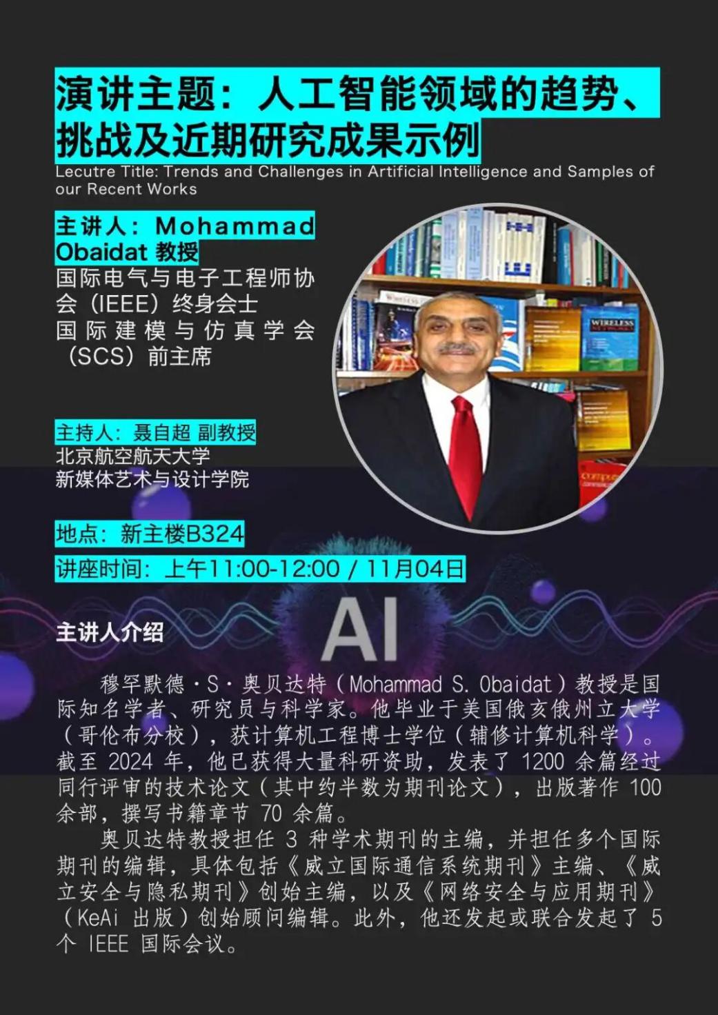 主講人:Mohammad Obaidat[國(guó)際電氣與電子工程師協(xié)會(huì)(IEEE)終身會(huì)士國(guó)際建模與仿真學(xué)會(huì)(SCS)前主席]