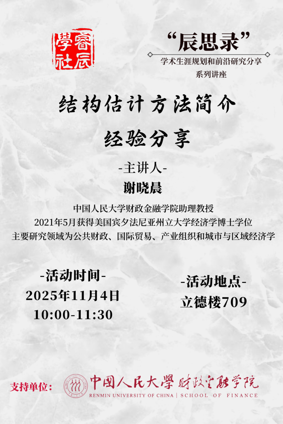 主講人:謝曉晨(中國(guó)人民大學(xué)財(cái)政金融學(xué)院助理教授)