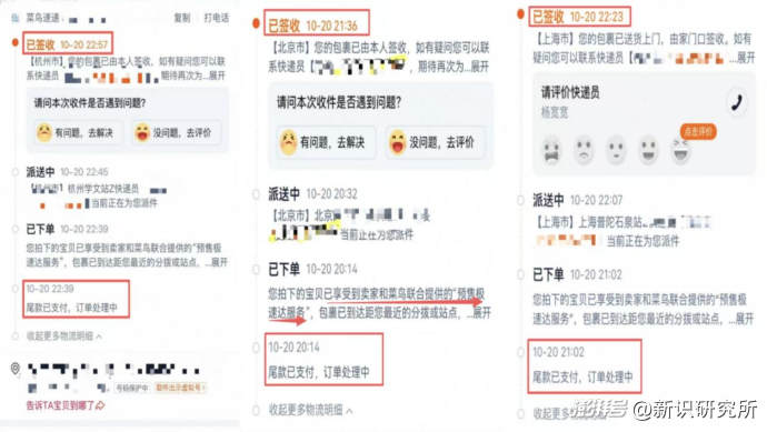 新識研究所發(fā)現(xiàn),在雙11期間網(wǎng)購的產(chǎn)品,基本發(fā)貨的次日就會(huì)收到取快遞短信,以往1-2天左右時(shí)間能取到快遞這在是比較少有的情況,但是今年已經(jīng)變成購物的常態(tài)。