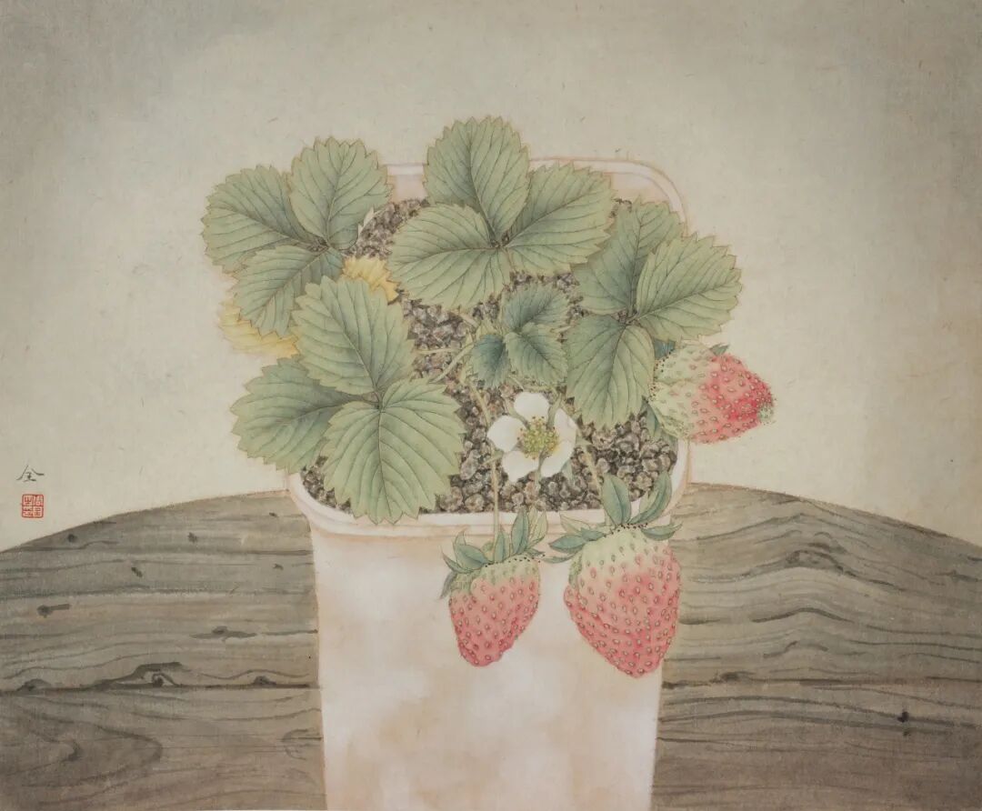 自栽草莓 32.5×39cm 紙本設(shè)色 2022