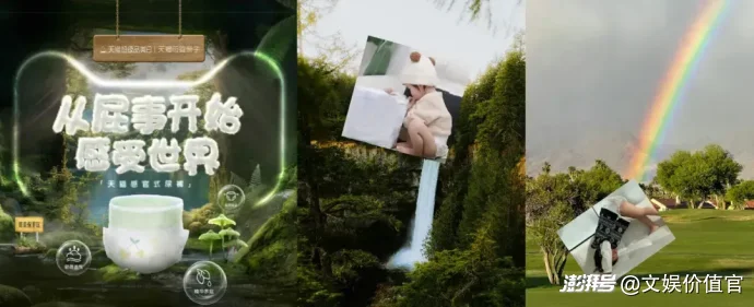 天貓的12大尿褲品牌,也玩起了“從屁事開始感受世界”的抽象游戲。一幅幅抽象的廣告畫作上,無不生動地表達(dá)寶寶穿上感官尿褲的體驗,激發(fā)了用戶一起參與到活動中來,不少UGC內(nèi)容橫空出世,彩虹屁、溪流屁等創(chuàng)意進(jìn)一步深化了品牌的核心創(chuàng)新。