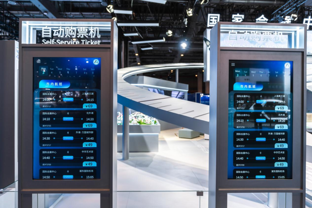 在御風未來打造的“國家會展中心起降點”,參觀者可在“自動售票機”查看航線價格并模擬預訂航班與座位,直觀體驗“掃碼打飛的”、一鍵訂行程的智慧出行方式。同時,起降點還設有安檢出入口、航班信息屏、候機休閑區(qū)、停機坪、低空經(jīng)濟示范區(qū)沙盤等多個區(qū)域,觀眾不僅能近距離了解起降點的運行機制,還能看到未來空中交通的城市網(wǎng)絡布局。