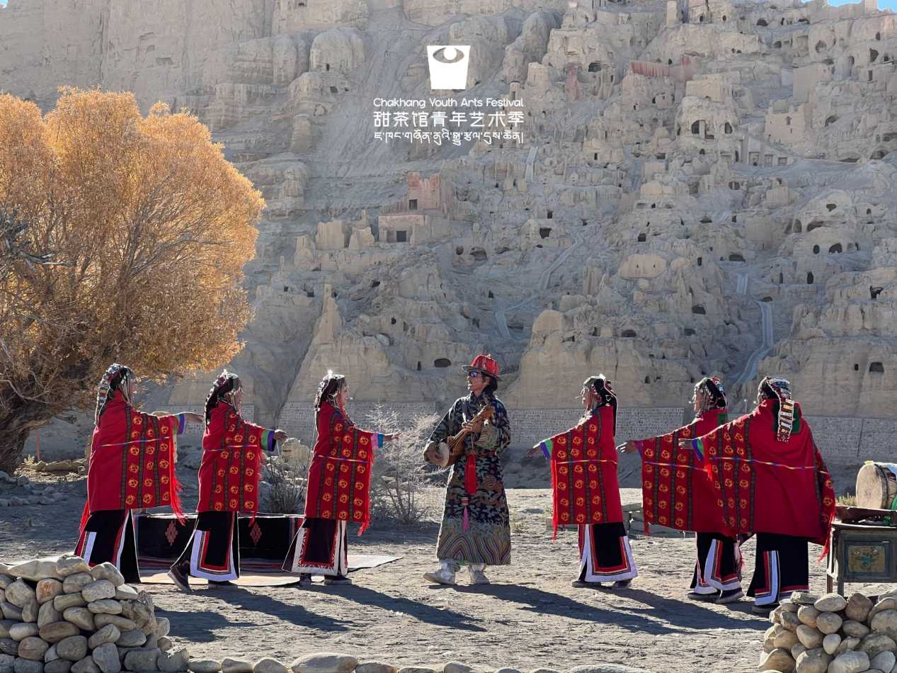 藏族音樂人在阿里古格王宮遺址演繹民歌《心儀的舞蹈》,以果沃琴彈唱對自然的敬畏之心。