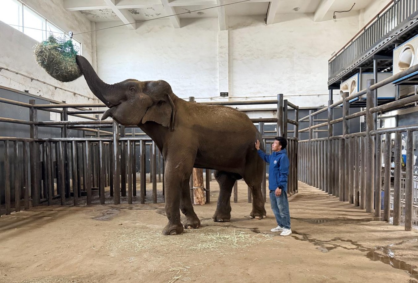 然而,當(dāng)宏觀藍圖落向每一個具體生命的真實處境時,“生態(tài)整體性”中那份超越物種與功利的情感聯(lián)結(jié),究竟該如何理解?答案,或許就藏在保護園的一角——一頭名叫嘎賽的亞洲象與飼養(yǎng)員索朗次仁的日常里。嘎賽年逾四十,獨居于海拔3600米的拉薩河谷。一日,和馬町走進象舍,與飼養(yǎng)員索朗次仁演交流“豐容”措施:用鮮枝替換干草,增設(shè)藏覓食網(wǎng)袋和蹭癢的木樁,引導(dǎo)嘎賽主動探索,緩解圈養(yǎng)焦慮。站在一旁的次仁認真記錄并不時追問細節(jié)。他興奮地表示:“我馬上就來調(diào)整,讓它生活得更自在?!?/p>
