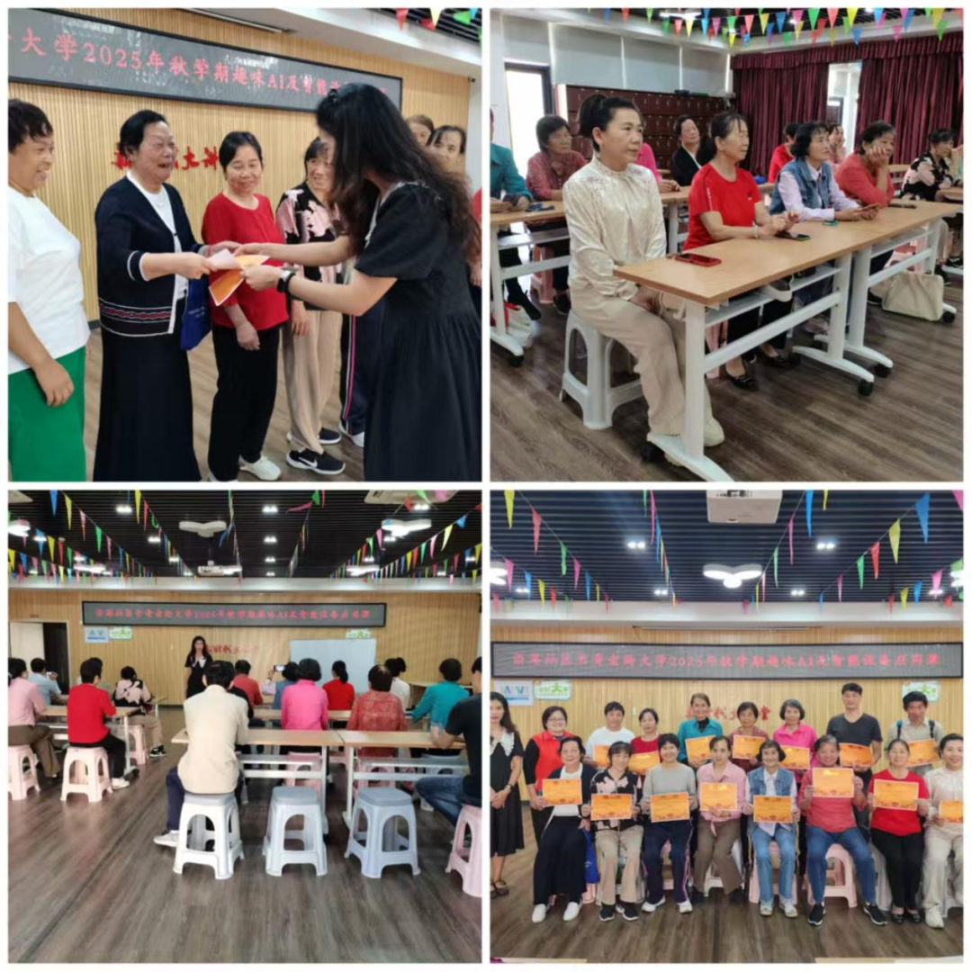 結(jié)課現(xiàn)場,15名優(yōu)秀學員接過榮譽獎狀、分享學習感受。居民王伯伯笑著說:“‘活到老 學到老’真不是一句空話,我現(xiàn)在能用AI給孫子做動畫視頻,還能自己剪輯廣場舞片段,生活一天比一天更精彩了。”