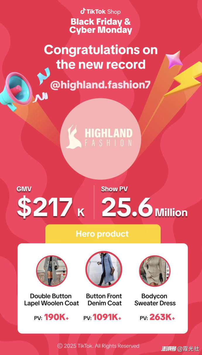 整體來看,TikTok Shop此次全球黑五大促借助時代廣場、NBA 場館等超級場景實現(xiàn)破圈,通過全球地標曝光實現(xiàn)線下引流線上,創(chuàng)下流量新高峰,不僅印證了其在爆品打造與市場拓展上的能力,更凸顯了TikTok Shop內(nèi)容電商在跨境出海中的獨特競爭優(yōu)勢。