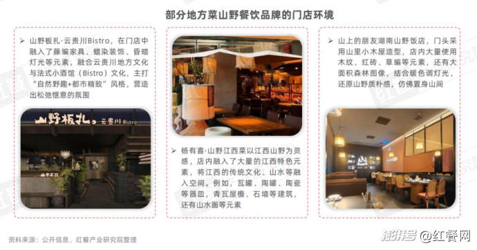 近年來,在中式正餐賽道也出現(xiàn)了一批山野餐飲品牌,它們聚焦于地方菜系打造“山野風(fēng)”,形成了鮮明的特色,成功走出了差異化的路徑。