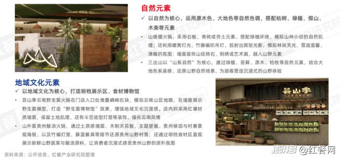 此外,山野火鍋品牌還會(huì)通過融入自然元素和地域文化元素來營(yíng)造山野氛圍。例如,一些山野火鍋品牌如蕓山季云南野生菌火鍋、山外面貴州酸湯火鍋等,以地域文化為核心,融入云貴川等地的特色元素,如吊腳樓、苗寨建筑、山區(qū)地貌、市井文化等。