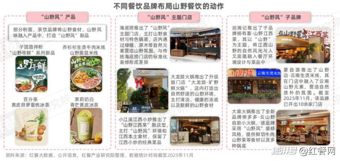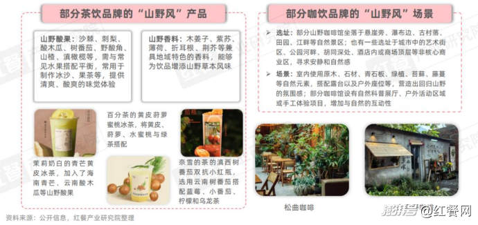 此外,餐飲業(yè)還出現(xiàn)了一些山野咖飲品牌、山野粉面品牌。還有一些品牌緊跟趨勢(shì),通過推出“山野風(fēng)”子品牌、山野主題門店、山野系列產(chǎn)品等動(dòng)作進(jìn)行“山野化”布局,以滿足消費(fèi)者對(duì)“自然、真實(shí)、松弛感”的深層需求。