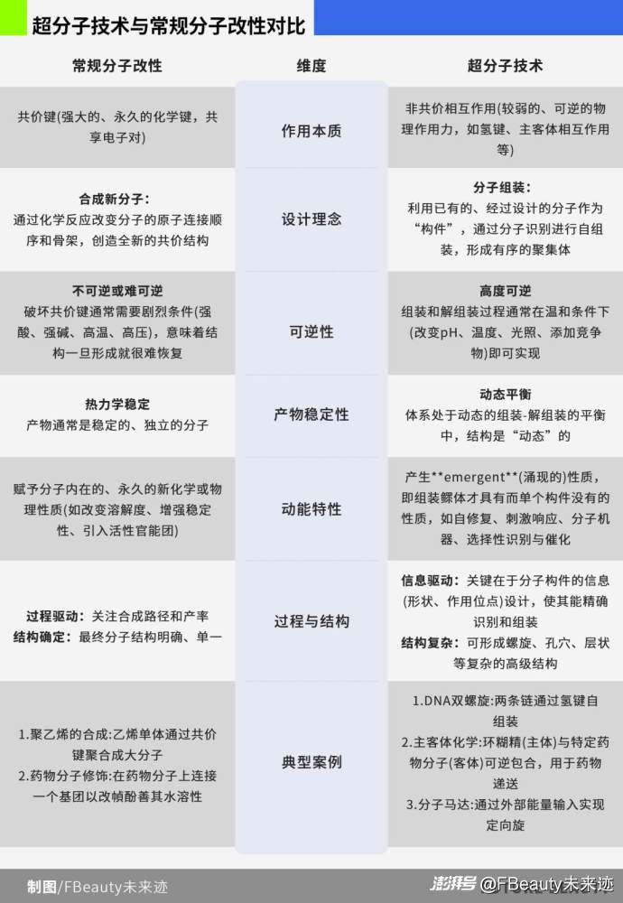 傳統(tǒng)方式如同雕刻大理石,永久性地創(chuàng)造一個(gè)新實(shí)體;而超分子技術(shù)則像編排戲劇,在不改變演員(分子)本身的前提下,通過設(shè)計(jì)場(chǎng)景(環(huán)境),讓他們自主互動(dòng)、臨時(shí)組合成一場(chǎng)動(dòng)態(tài)的、智能的“表演”。這種動(dòng)態(tài)可逆的特性,使其能模擬生命體系(如酶與底物的結(jié)合)的運(yùn)作,為化妝品實(shí)現(xiàn)精準(zhǔn)、智能的功效遞送提供了全新可能。