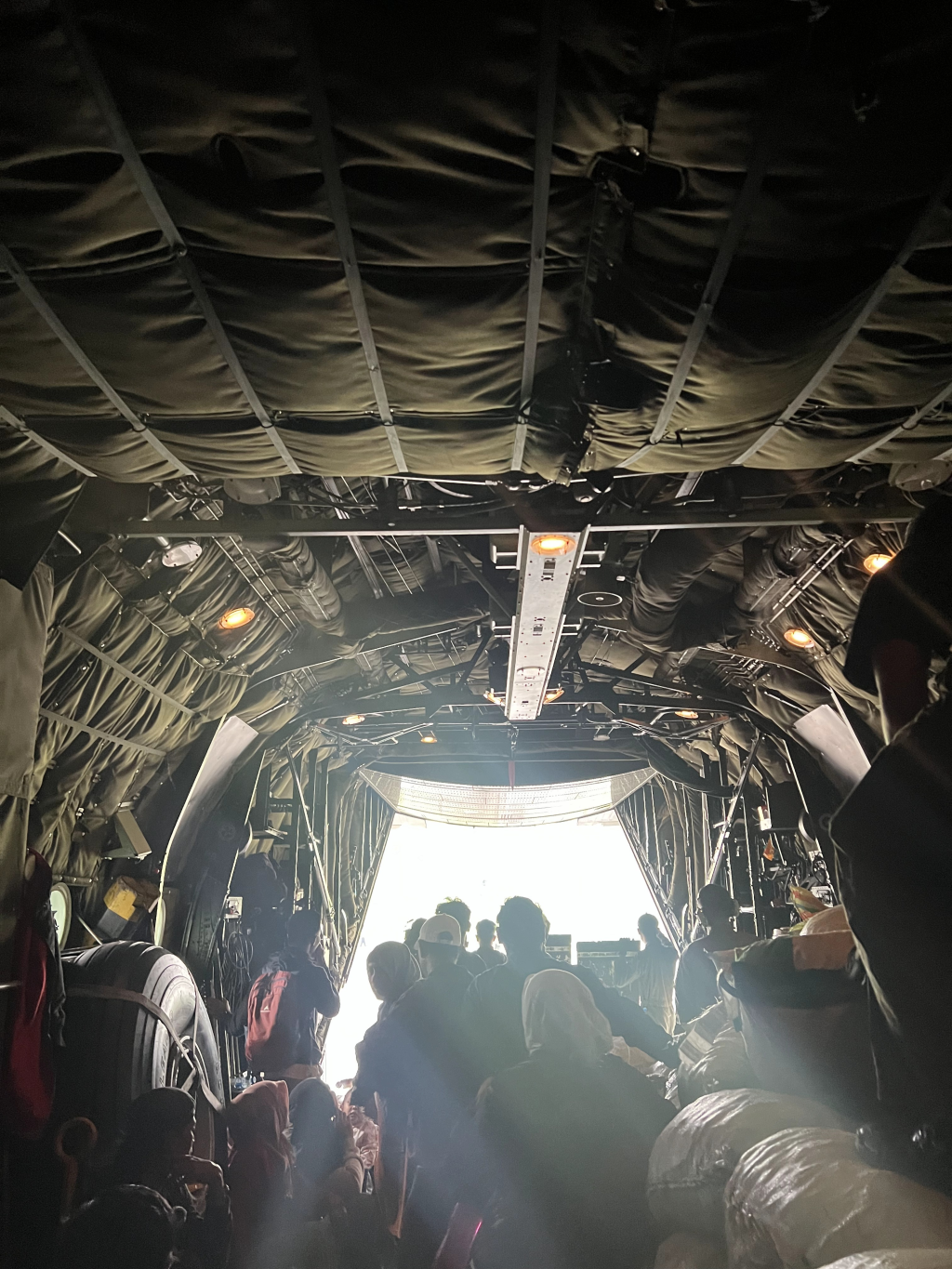 在軍機(jī)上被轉(zhuǎn)移的災(zāi)民。徐云香供圖