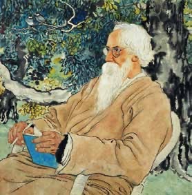徐悲鴻 《泰戈?duì)栂瘛芳埍舅O(shè)色 徐悲鴻紀(jì)念館藏