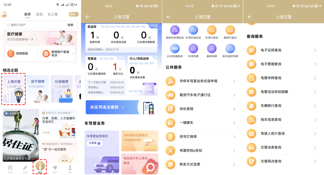 “隨申辦市民云”APP的“上海交警”專區(qū)涵蓋了市民關(guān)注度較高的交通違法視頻舉報(bào)、一鍵挪車、車駕管業(yè)務(wù)預(yù)約、非機(jī)動(dòng)車注冊(cè)登記、免檢車申領(lǐng)標(biāo)志、換領(lǐng)行駛證、快處易賠等高頻車主熱門業(yè)務(wù)。