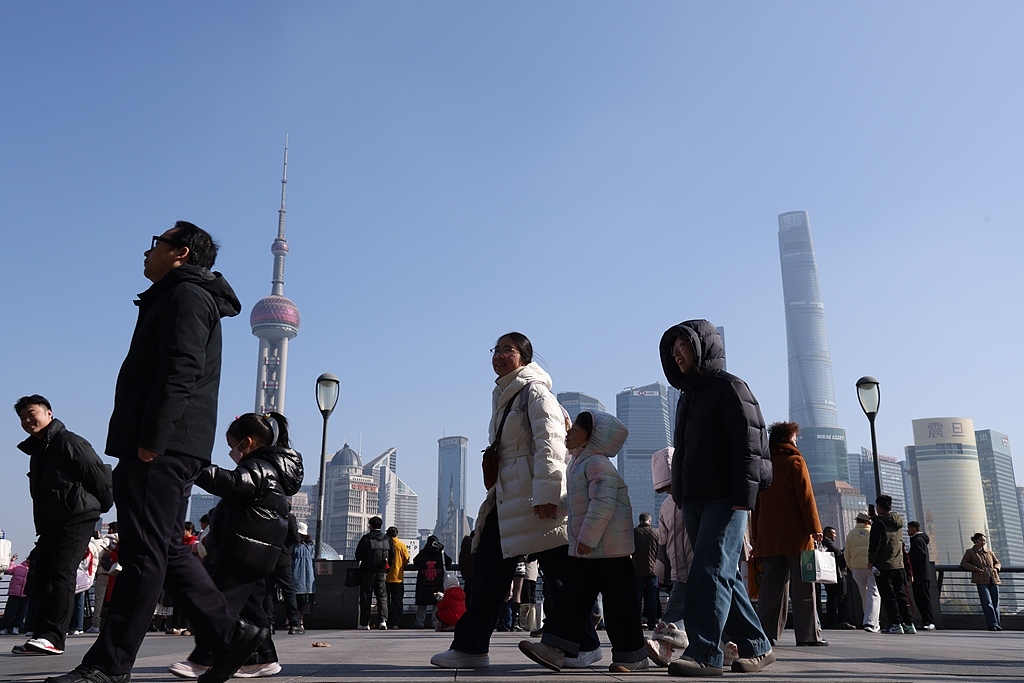 2025年12月14日,上海,游人在外灘游玩。據(jù)天氣預(yù)報:隨著冷氣團(tuán)控場,上海今天轉(zhuǎn)為晴到多云為主。早晨市區(qū)最低氣溫僅有1℃多,郊區(qū)零下1℃到2℃附近。白天陽光在線,但也難被“焐熱”,氣溫一整天都很低迷,最高氣溫將止步在8℃上下。