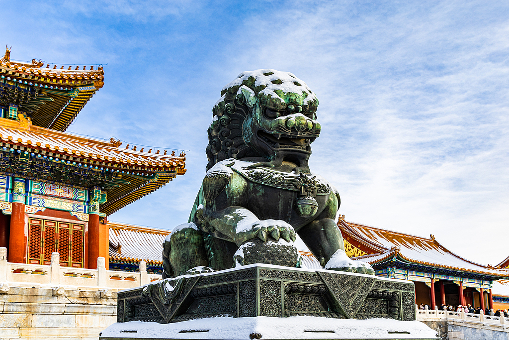 2025年12月13日,北京故宮,雪后的太和門石獅。