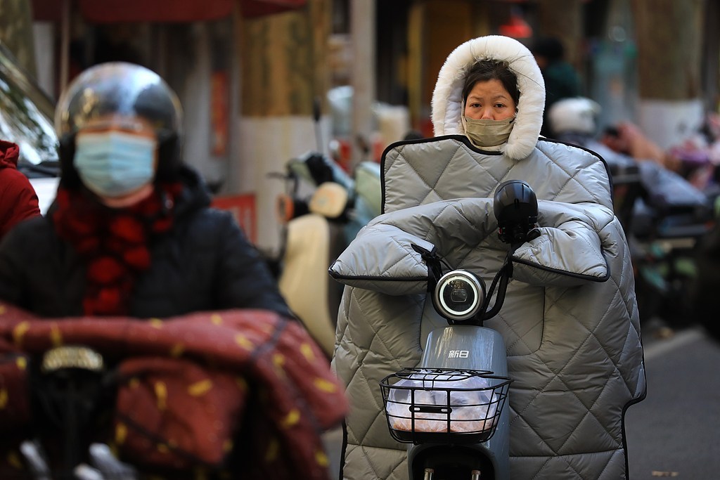 2025年12月14日,江蘇省淮安市街頭市民全副武裝保暖出行。寒潮持續(xù)影響江蘇,帶來大風(fēng)、降溫和降水天氣,其中部分城市將迎來小雪。全省48小時內(nèi)最低氣溫降幅在8到10攝氏度,最低氣溫將下滑到零攝氏度線以下,最高氣溫下滑到10攝氏度以下。