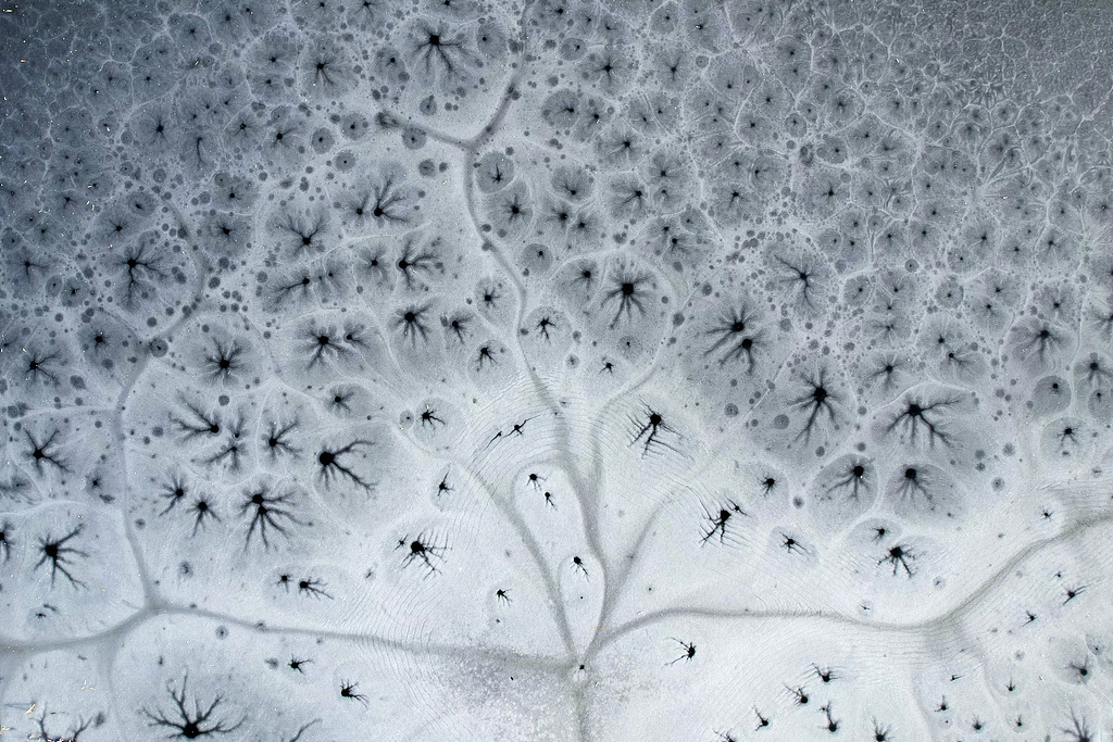 2025年12月14日,山西太原,汾河公園內(nèi)出現(xiàn)奇異“冰花”景觀。