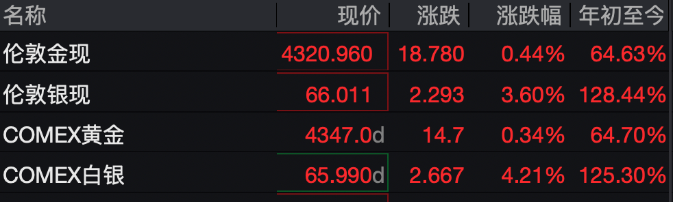現(xiàn)貨白銀價(jià)格突破66美元/盎司關(guān)口,再創(chuàng)歷史新高。