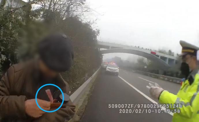 2月10日,重慶。一名中年醉漢走上滬渝高速,不僅沒戴口罩,也拒不配合,執(zhí)意繼續(xù)徒步,“大方”掏出100元車費(fèi)給執(zhí)法人員,在成功將其帶下高速后,執(zhí)法人員退回費(fèi)用。