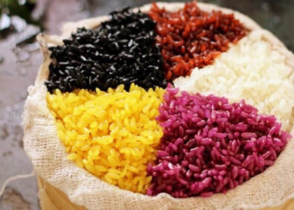 每年三月三到來之際,廣西的許多地方都有蒸制五色糯米飯迎接節(jié)日的習(xí)俗,以祈禱五谷豐登,五福臨門。這種糯米飯又稱“烏飯”“青精飯”,這一習(xí)俗沿襲久遠(yuǎn),清代《武緣縣圖經(jīng)》載:“三月三日,取楓葉泡汁染飯為黑色,即青精飯也”。糯米飯的五種色彩,主要是用天然植物浸泡出液,得到不同的色彩,再拌著糯米,合而蒸之得來。