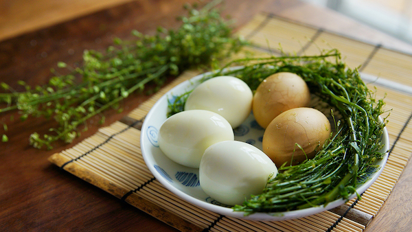 “城中桃李愁風(fēng)雨,春在溪頭薺菜花?!苯系脑S多地方,三月三都會吃薺菜煮雞蛋。春天的這個(gè)時(shí)候,薺菜在江南已經(jīng)是漫山遍野,去山上掐一把,或者在市場上買一把鮮嫩的,葉子翠綠,頂端還開著一點(diǎn)細(xì)小白花,再加上幾個(gè)雞蛋,便是原料。做法也簡單,一鍋水,放入薺菜,加進(jìn)雞蛋連殼煮。等雞蛋差不多熟了,用筷子把蛋殼敲破些,再接著煮一會,薺菜的清香就煮進(jìn)了雞蛋。