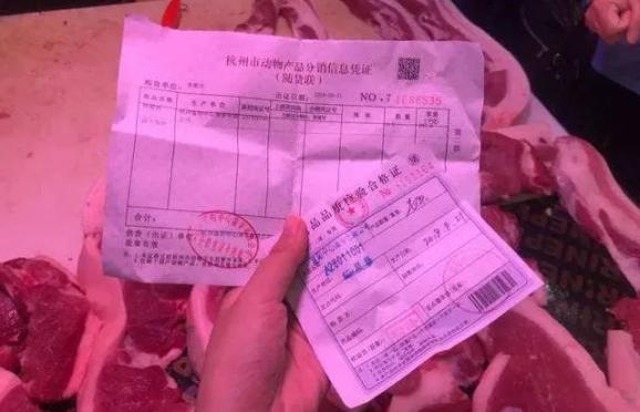 兩章是定點(diǎn)屠宰企業(yè),在生豬肉上市前,印在豬肉表面的兩個(gè)章。