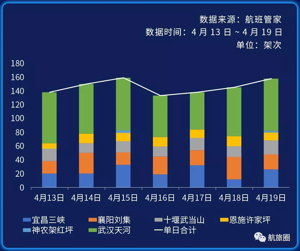 據(jù)航班管家的湖北機(jī)場(chǎng)復(fù)航數(shù)據(jù)周報(bào)(4月13日-19日),過(guò)去一周湖北機(jī)場(chǎng)共計(jì)進(jìn)出港客運(yùn)航班達(dá)1021架次,環(huán)比前一周下降19.22%。其中,武漢機(jī)場(chǎng)進(jìn)出港客運(yùn)航班量最多,占湖北整體航班量的47.3%,其次是襄陽(yáng)機(jī)場(chǎng)和宜昌機(jī)場(chǎng)。