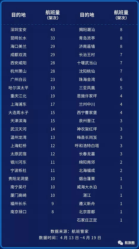 武漢機(jī)場(chǎng)客運(yùn)航班量最多的分別是南方航空、東方航空、廈門航空,其中南航航班量占武漢機(jī)場(chǎng)的35.20%。成都、昆明和海口是武漢出港目的地航班量前三的地方。