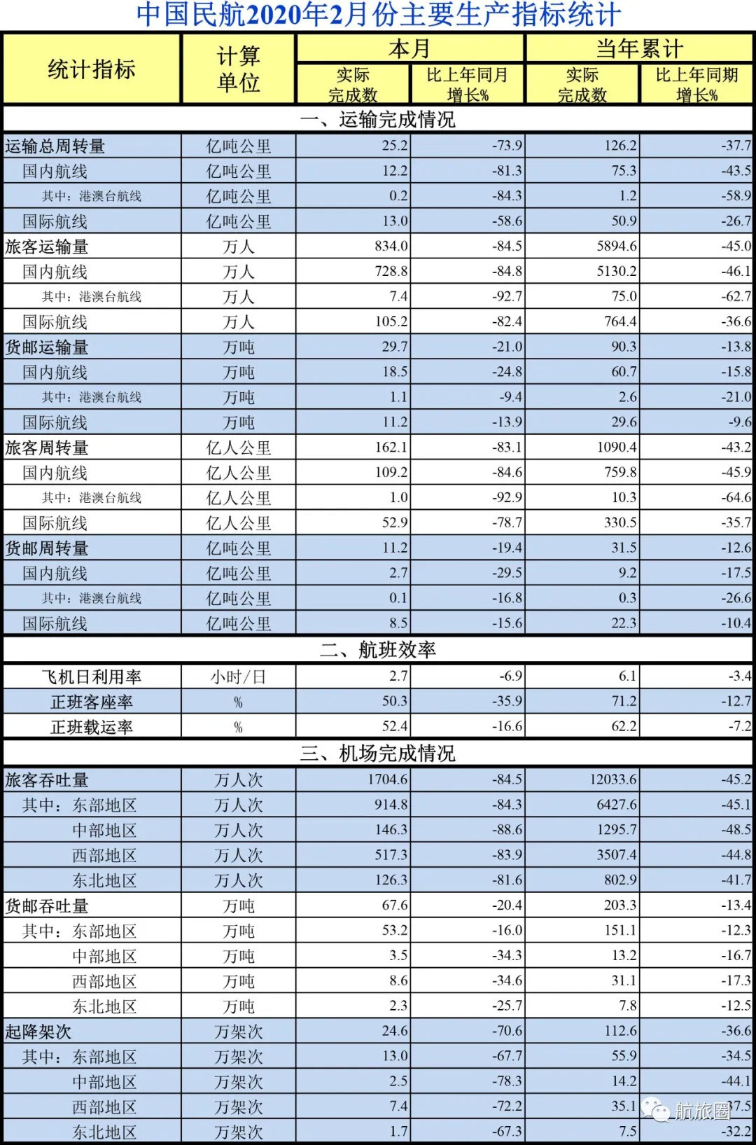 民航局今天公布中國(guó)民航2月主要生產(chǎn)指標(biāo)。2月旅客運(yùn)輸量、周轉(zhuǎn)量同比減少超過(guò)80%,貨郵運(yùn)輸量、周轉(zhuǎn)量同比減少約20%。飛機(jī)日利用率2.7小時(shí),同比減少6.9小時(shí),環(huán)比1月減少6.5小時(shí)。