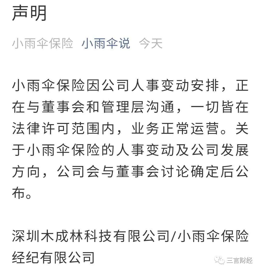 不過,小雨傘官方微信號今日就此事發(fā)布了簡短聲明,大體意思是人事調(diào)動還在討論中。