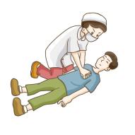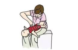 6、如果是年齡較小的兒童,可以讓兒童背靠大人做在腿上,通過上述手勢(shì)擠壓兒童腹部,或者平躺用手掌根部推壓腹部,迫使異物排出。