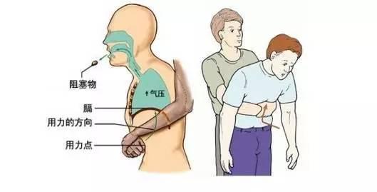 3、自下往斜上的方向連續(xù)快速用力沖擊腹部,直到病人將異物排出。