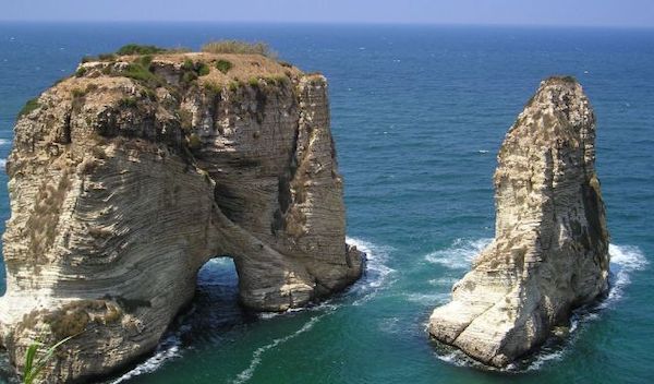 蜿蜒的海岸線上,有人釣魚,有人游泳。走在這里,你還會(huì)經(jīng)過貝魯特最著名的自然景觀——鴿子巖,由兩個(gè)風(fēng)化的拱門狀巖石突出海面而構(gòu)成。青年們會(huì)在鴿子巖上抽水煙,玩跳水,無論動(dòng)靜都有著好看的身形。