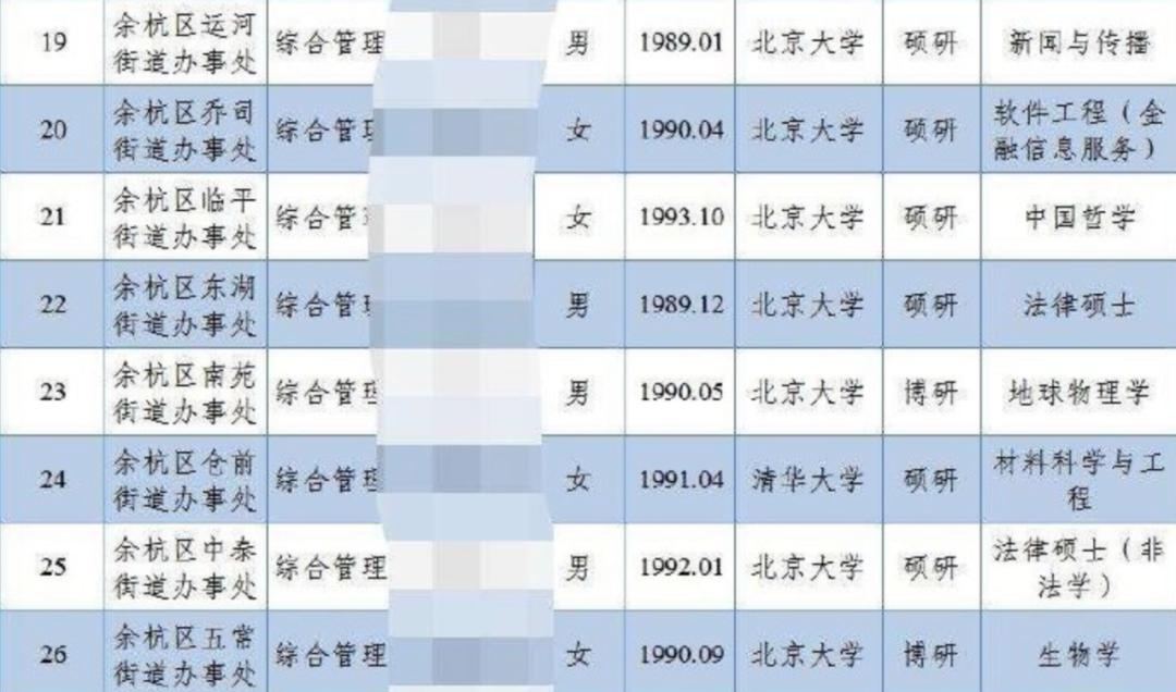 上周,先是杭州市余杭區(qū)2018年的一份招聘公示名單在網(wǎng)絡上引起熱議,公開顯示的48個崗位中,招收的清一色都是清華和北大的碩博士生,其中有9個還是“街道辦”這樣在吃瓜群眾眼中無足輕重的崗位。