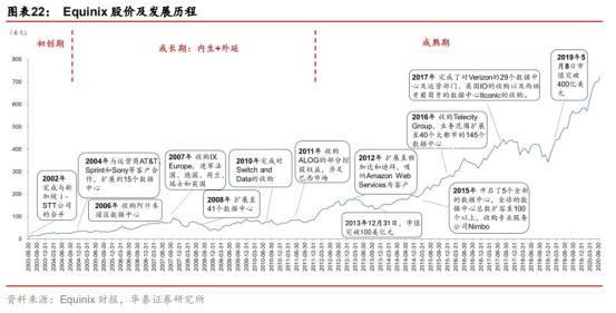 回顧Equinix的發(fā)展之路,可以清晰的發(fā)現(xiàn)其股價(jià)與規(guī)模呈正相關(guān)。
