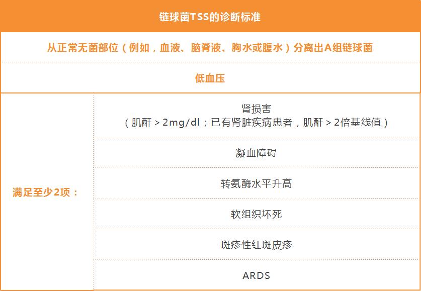 從診斷標準可以看出,診斷金葡菌TSS需要細菌培養(yǎng)陰性。但后來很多學者認為,金葡菌TSS的診斷必須有病原學證據(jù)始可確診。沒有實驗室檢查則很難區(qū)分到底是金葡菌還是鏈球菌導致的TSS。