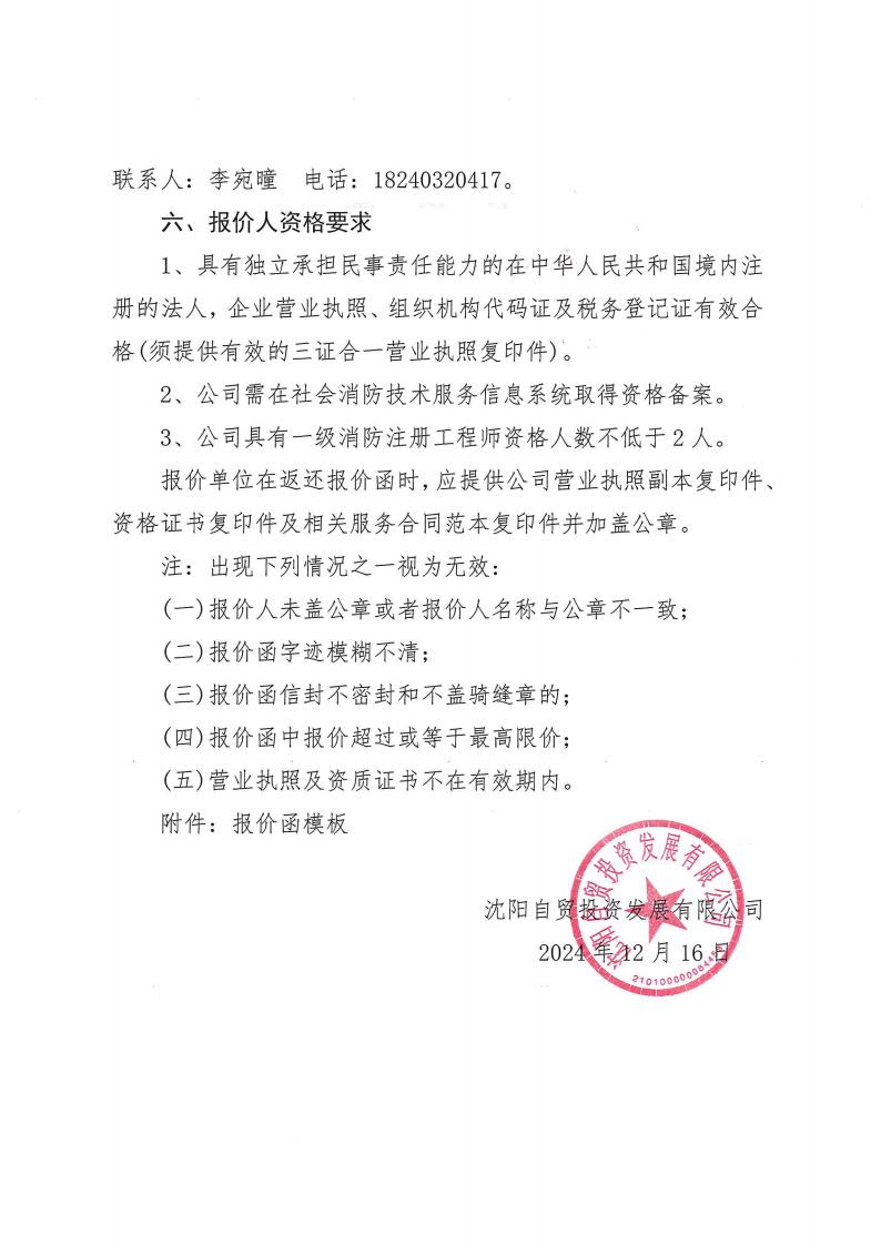 附件2: 沈陽(yáng)自貿(mào)投資發(fā)展有限公司消防維護(hù)保養(yǎng)詢價(jià)項(xiàng)目報(bào)價(jià)函模板